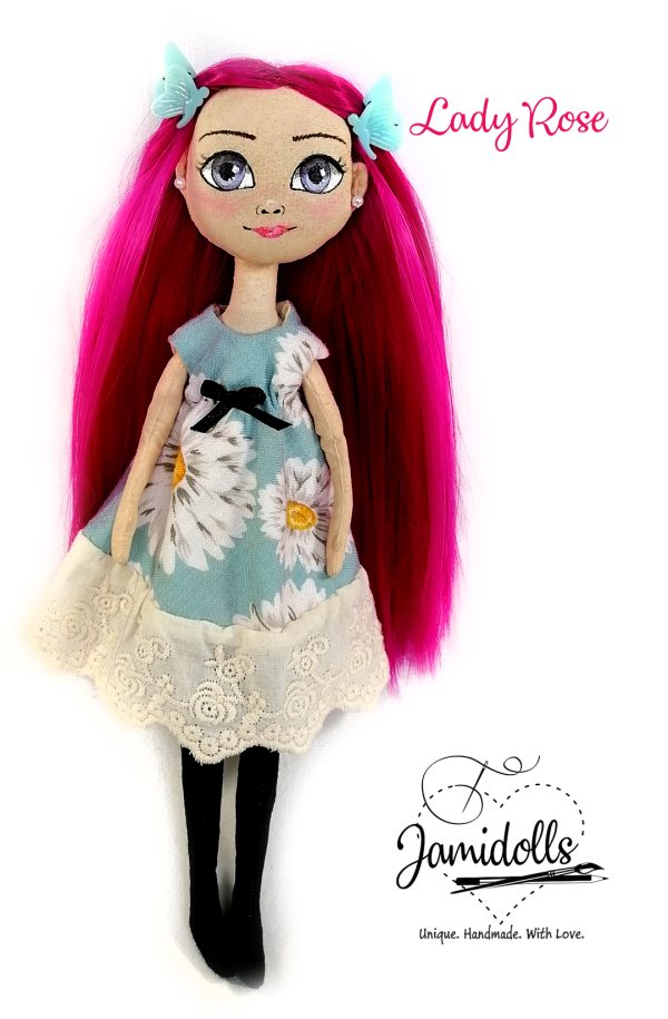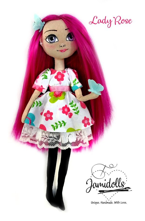 La muñeca está pintada con pintura de tela especial, evitar lavar ya que el pelo es de nylon.