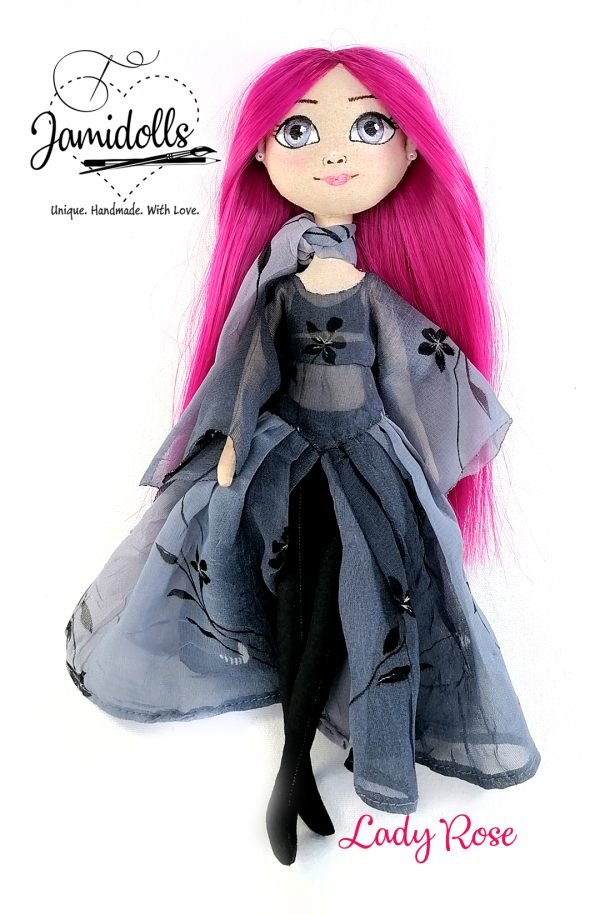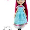 La muñeca está confeccionada con tela de algodón y relleno de algodón de microfibra 100% antialérgico.  Los brazos se articulan.